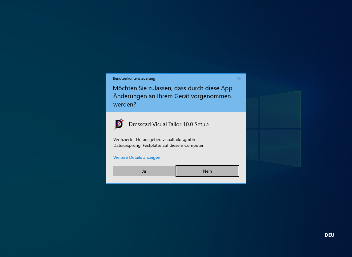 Im Dialog für die Benutzerkontensteuerung klicken Sie auf "Ja", um die Installation zu starten.